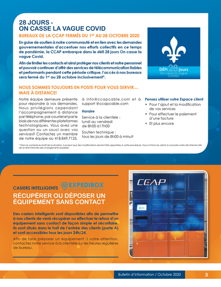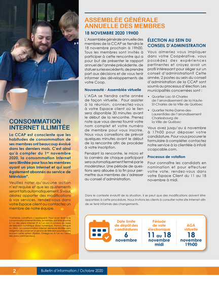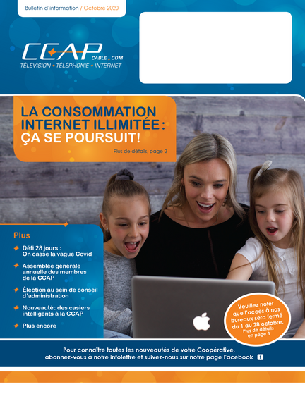 jeudi le 15 octobre 2020 Bulletin d'information - Octobre 2020 La consommation Internet illimitée, Défi 28 jours : On casse la vague Covid, l'Assemblé générale annuelle et encore plus!